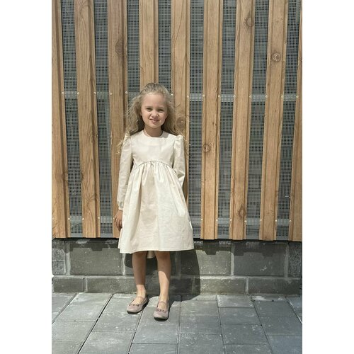 Школьное платье хлопок, размер 128/134-68, бежевый