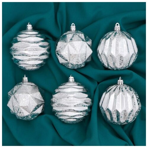 Набор шаров пластик d-8 см, 6 шт "Грани ассорти" серебро