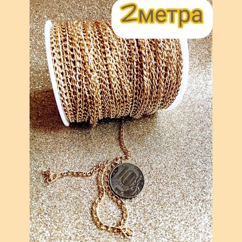 Цепь для бижутерии под золото 2 метра , цепочка для сумок, фурнитуры и украшений, звено 7мм*5мм