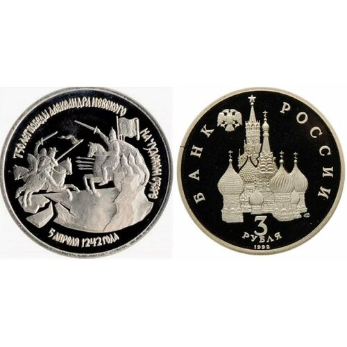 3 рубля 1992 года 750-летие Победы Александра Невского на Чудском озере