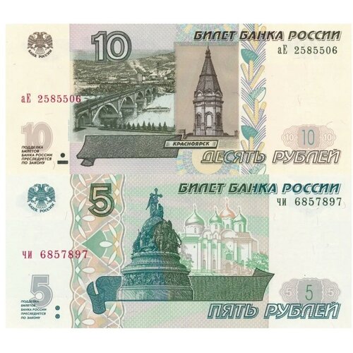 Набор из 2 банкнот 2022 года выпуска - 5 рублей 1997 год и Россия 10 рублей 1997 год- модификация 2004 год