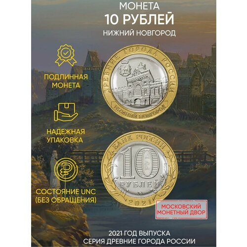 Монета 10 рублей Нижний Новгород. Древние города России, Россия, 2021 г. в. Состояние UNC (из мешка)