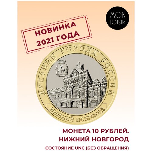 Монета 10 рублей Нижний Новгород. Древние города. ММД, 2021 г. в. UNC (из мешка)