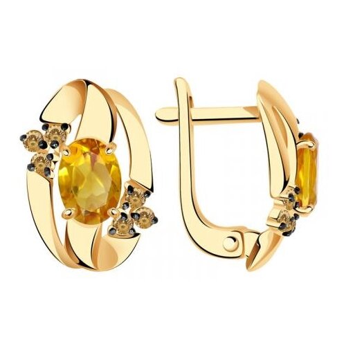Золотые серьги Sokolov 727039 с цитрином, янтарём и миксом камней