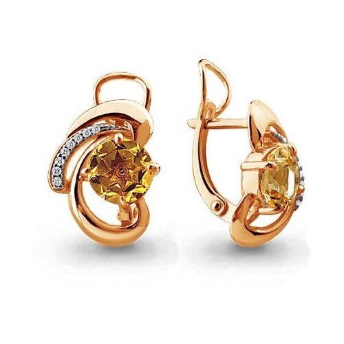 Золотые серьги Александра кл2122а-6ск-ш с фианитом и цитрином