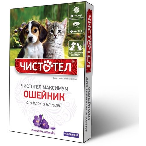 Чистотел ошейник для щенков и котят всех пород от блох, клещей, вшей 50 см, фиолетовый