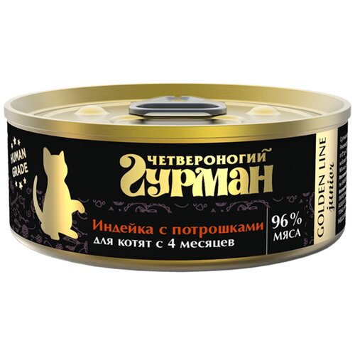 Четвероногий Гурман Золотая линия влажный корм для котят всех пород, с индейкой и потрошками в желе 100 гр (26 шт)