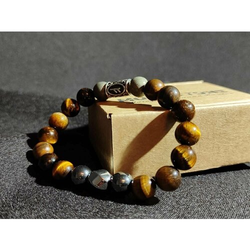 Браслет талисман мужской из натуральных камней/мужская бижутерия/Руна Феху/Гематит/Тигровый глаз/Пирит