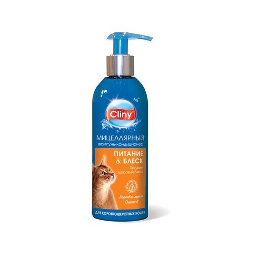 Cliny Шампунь-кондиционер Питание и блеск для короткошерстных кошек 200 мл K304 0,2 кг 56002 (10 шт)
