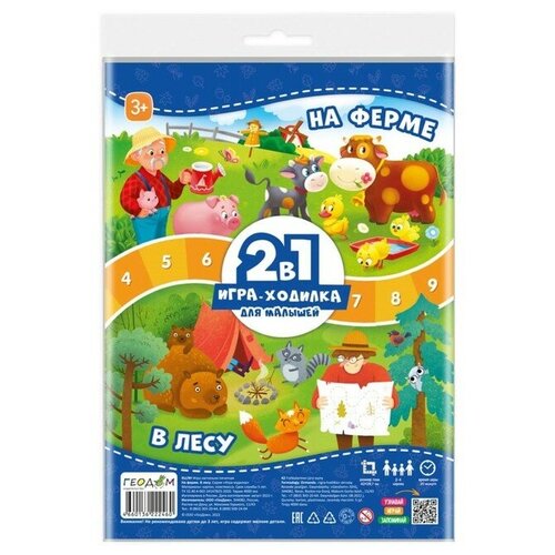 Игра-ходилка с фишками для малышей 2в1. На ферме+В лесу. 42х29,7 см. геодом, изд.: Гео-дом