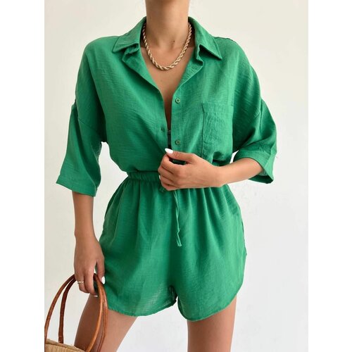 Костюм женский с шортами из эко льна / цвет пудровый / размер 42-44 (S)