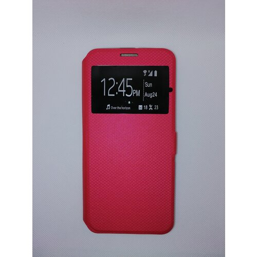 Чехол-книжка для смартфона Honor 7A красного цвета с окошком, магнитной застежкой и подставкой.