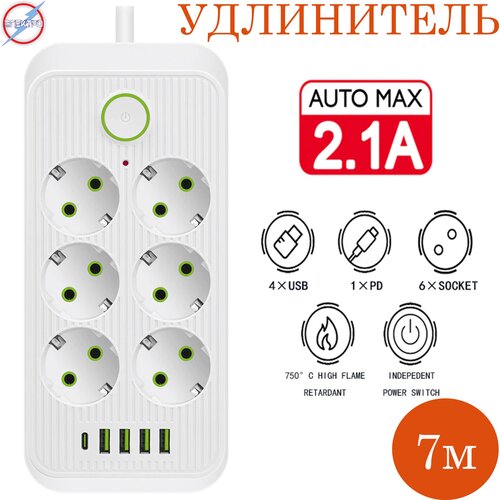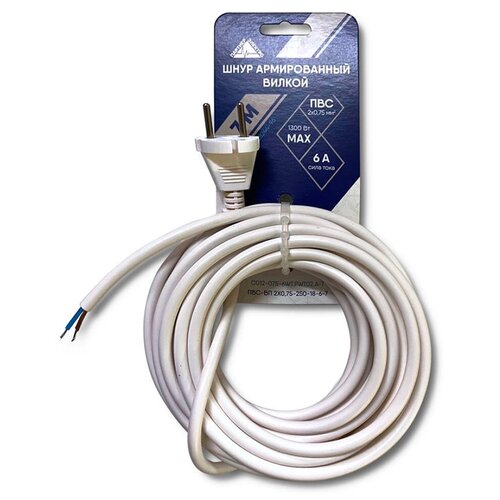 Шнур сетевой Партнер-Электро (ЦБ-00013568) без заземления 7,0 м 6 А 220-250 В 1,3 кВт ПВС-ВП 2х0,75 IP20 с вилкой белый