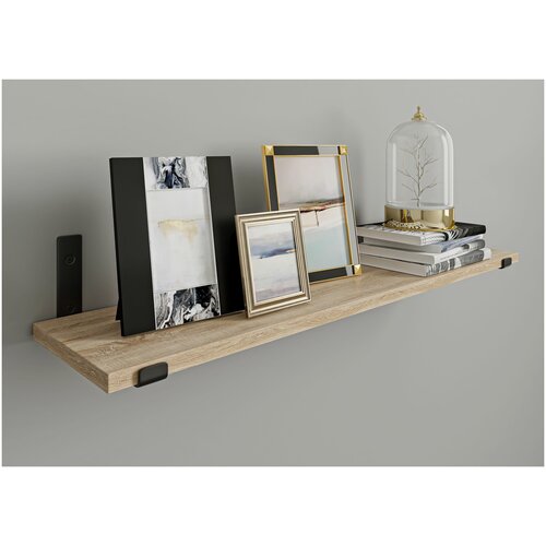 Полка 80х20 см дуб с кронштейнами черного цвета