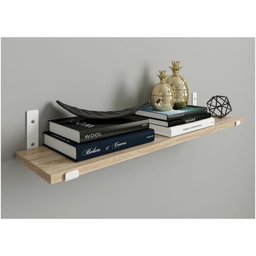 Полка 80х20 см дуб с кронштейнами белого цвета