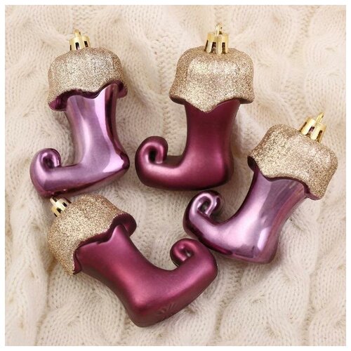 Украшение ёлочное "Сапожок эльфа" 5х6,5 см (набор 4 шт) бордовый