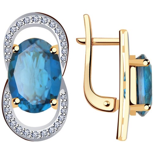 Золотые серьги Русь Золотая С-817 с Лондон топазом и цирконием