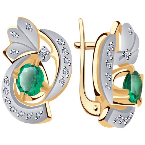 Золотые серьги Русь Золотая ПС683-66328 с гидротермальным изумрудом и цирконием