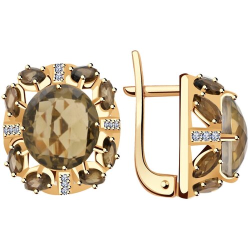 Золотые серьги Русь Золотая ПС1082-66347 с раухтопазом и цирконием