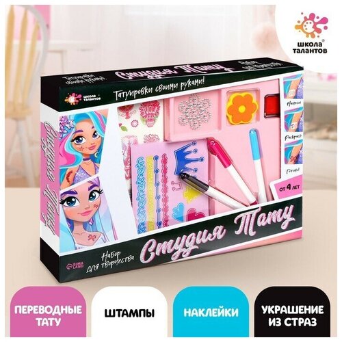 Набор для рисования на коже Студия тату, 4 карандаша, 3 ручки, 3 трафарета
