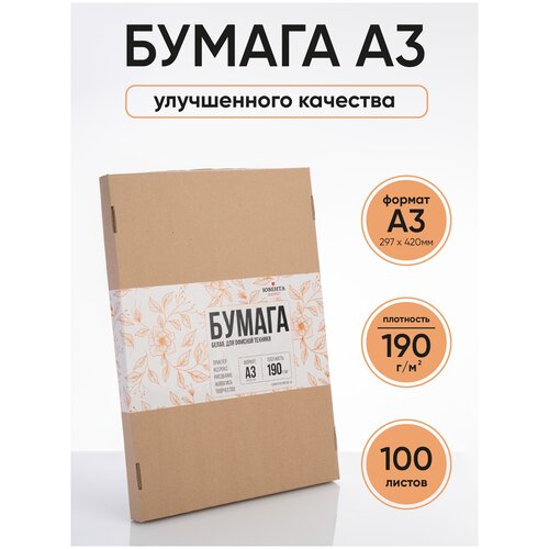 Бумага А3, Ювента. Маркет, 190 г/м2, 100 листов