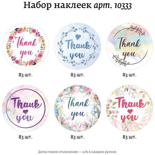 Набор наклеек 10333 Thank you, полипропиленовая пленка, диаметр 40 мм, 500 шт. Ювента. Маркет
