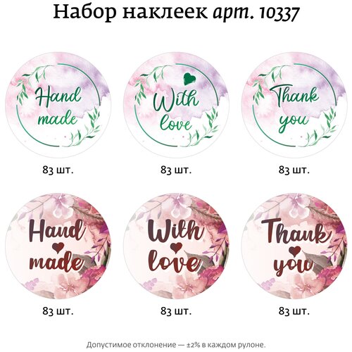 Набор наклеек 10337 Hand made, With love, Thank you, полипропиленовая пленка, диаметр 40 мм, 500 шт. Ювента. Маркет