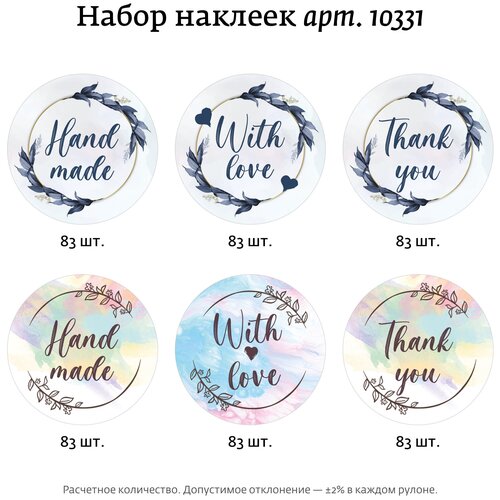 Набор наклеек 10331 Hand made, With love, Thank you, полипропиленовая пленка, диаметр 40 мм, 500 шт. Ювента. Маркет