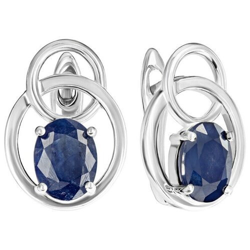 Серебряные серьги с натуральным сапфиром / покрытие Чистое Серебро
