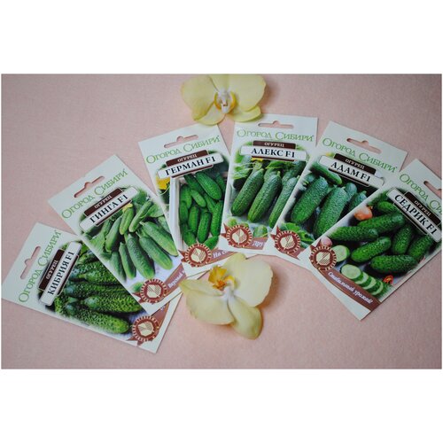 Семена огурцов, набор "Похрустим" в составе СедрикF1, АдамF1, АлексF1, ГерманF1, ГингаF1, КибрияF1.