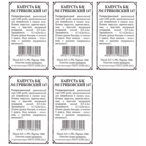 Семена Капуста б/к №1 Грибовский БП * 5 упаковок