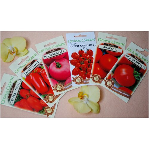 Семена томатов, набор "Засолочный" в составе Семко2005F1, ПоззаноF1, Розовая КатяF1, Черри дачныйF1, Прима доннаF1, АватарF1.