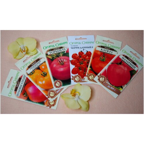 Семена томатов, набор "Универсальный" в составе Воловье сердце, Мазарини, КатяF1, Черри дачныйF1, ТорбейF1, Оранжевый статусF1.