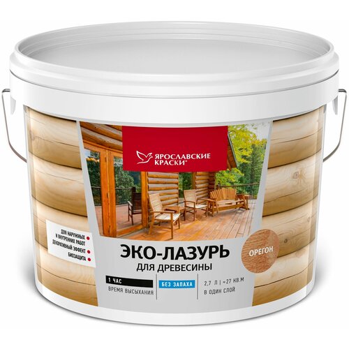 Пропитка для древесины Ярославские краски Эко-лазурь с декоративным эффектом и биозащитой цвет орегон 2.7 л
