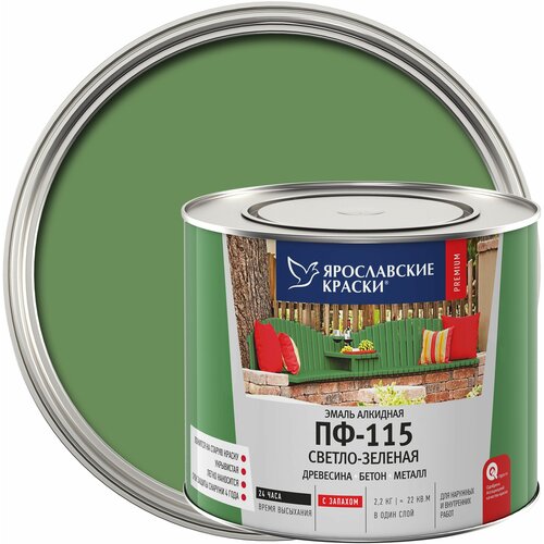 Эмаль Ярославские краски ПФ-115 глянцевая цвет светло-зелёный 2.2 кг