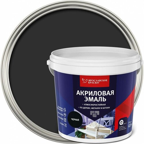 Ярославские краски Эмаль универсальная акриловая черная матовая, 0,9 кг О05196