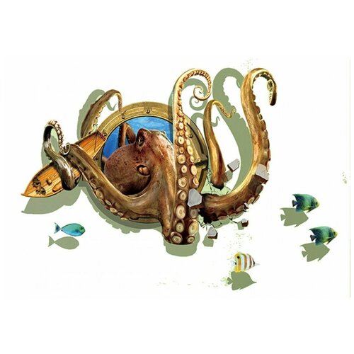 Наклейка для интерьера "Черный крокодил и египетское солнце / священное животное и иероглифы"