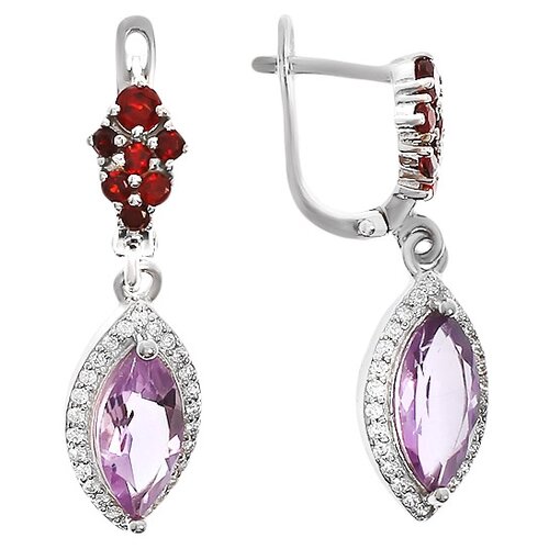 Серьги Balex, серебро, 925 проба, родирование, фианит, аметист, гранат