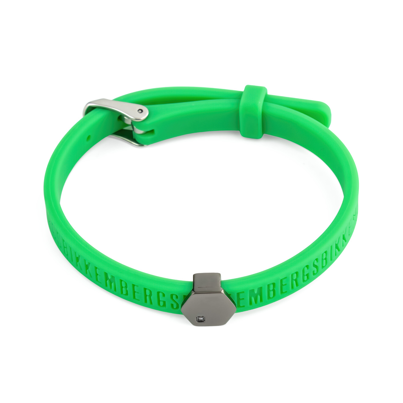 BIKKEMBERGS JEWELLERY Каучуковый браслет зеленого цвета с вставкой из нержавеющей стали с синтетическим бриллиантом
