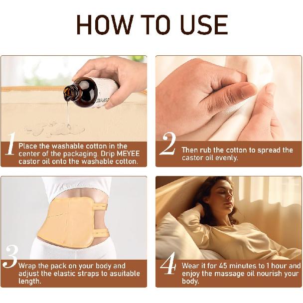 Компресс с касторовым маслом для детоксикации: 100% Чистое Масло Холодного Отжима в Стеклянной Бутылке с Хлопковыми Обмотками для Поддержки Печени
