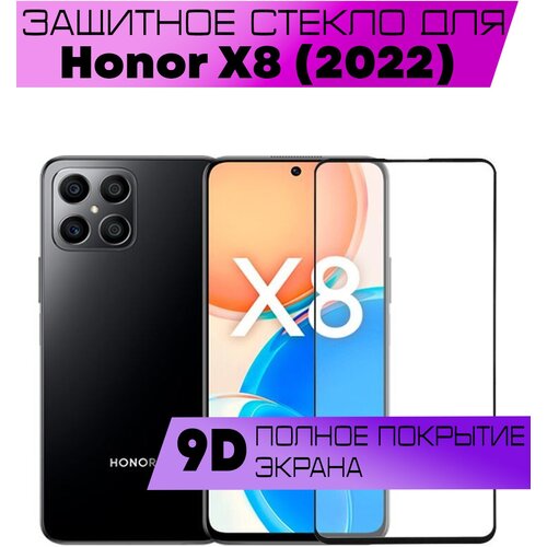 Защитное стекло Buyoo 9D для Honor X8 (2022) / Хонор Х8 (черная рамка / на весь экран)