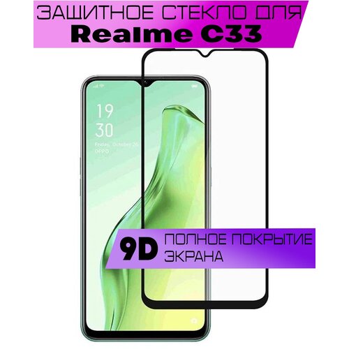 Защитное стекло Buyoo 9D для Realme C33 / Реалми С33 (черная рамка / на весь экран)