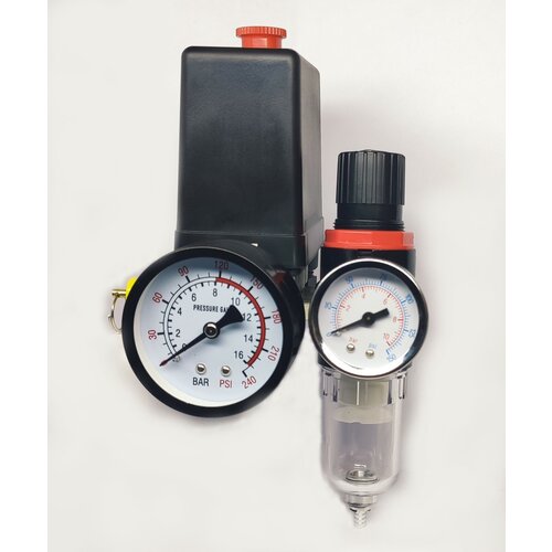 Реле давления 220В в сборе с редуктором, фильтром и предохранительным клапаном (10 бар)