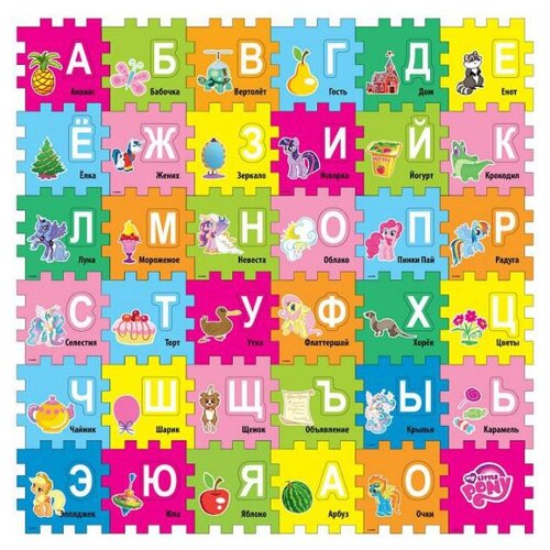 Коврик-пазл Играем вместе My Little Pony с буквами (FS-ABC-MLP), зеленый/желтый/розовый, 90х90 см, 36 элементов