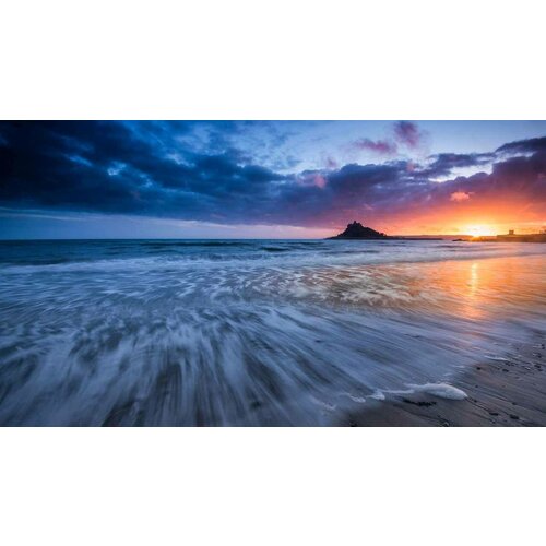 Постер на экокоже 40x50 LinxOne "Море Корнуолл Mount s Bay" интерьер для дома / декор на стену / дизайн