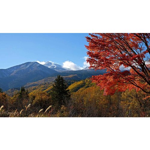 Картина на холсте 40x50 LinxOne "Япония Mount Осень Горы ветвь" интерьер для дома / декор на стену / дизайн