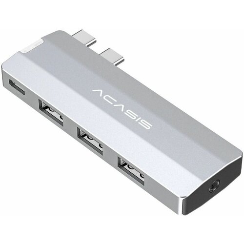Хаб USB Acasis 5 в 1 для MacBook Pro / Air 2016-2022, 1 x Thunderbolt 40 Гбит/с + 3 x USB 3.2 10 Гбит/с + 1 x 3.5 jack (HS-M3UA), серебристый