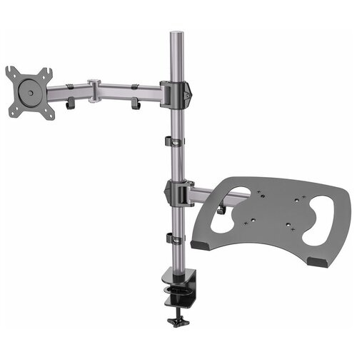 Кронштейн для монитора/ноутбука Cactus CS-VM-LH07-AL, до 27", до 8кг, настольный, поворот и наклон, серебряный