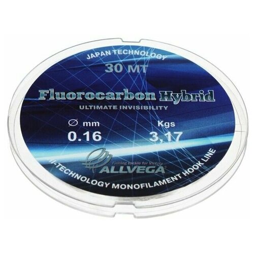 Леска монофильная ALLVEGA "Fluorocarbon Hybrid" 30м 0,16мм, 3,17кг, флюорокарбон 65%