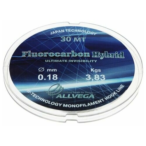 Леска монофильная ALLVEGA Fluorocarbon Hybrid, диаметр 0.18 мм, тест 3.83 кг, 30 м, флюорокарбон 65%